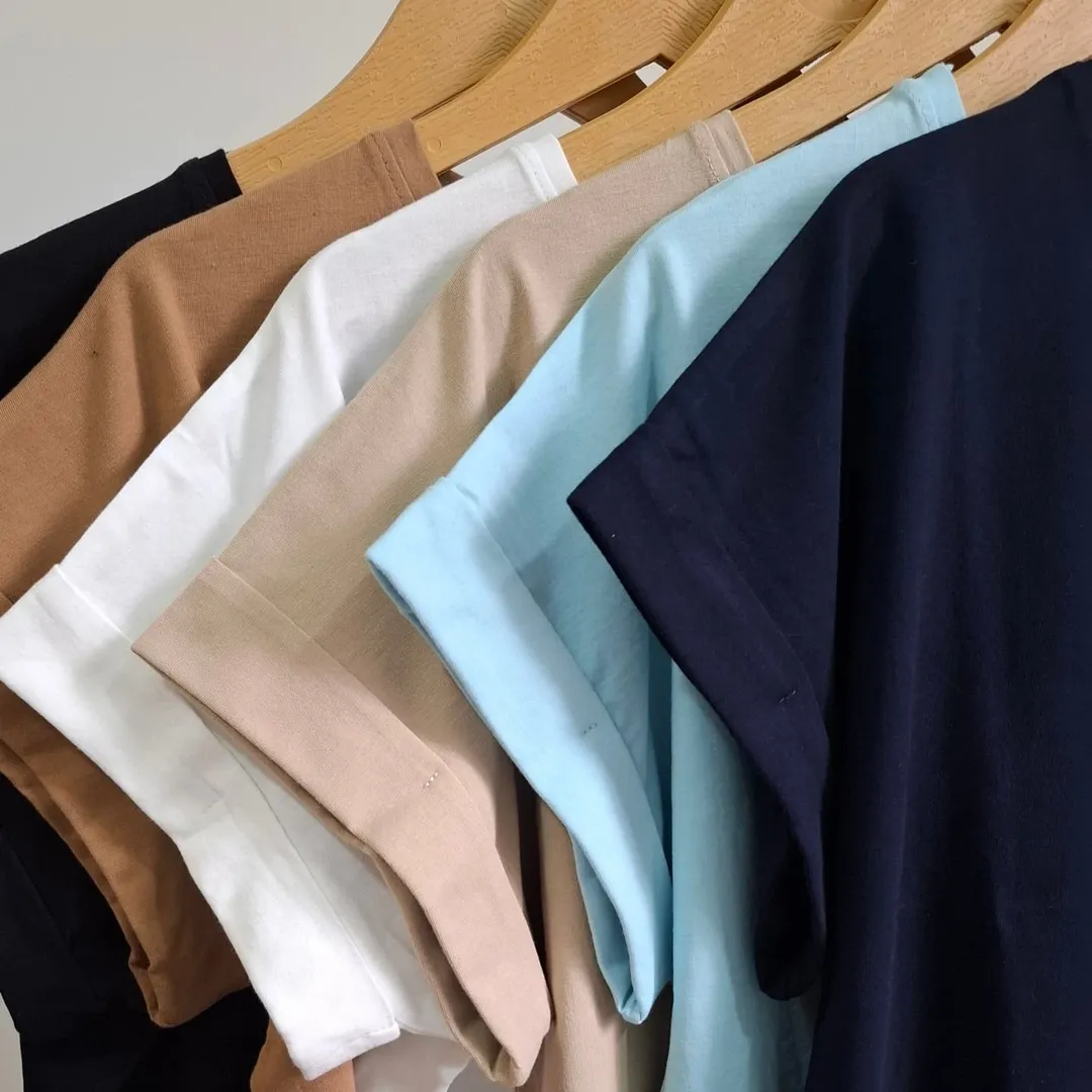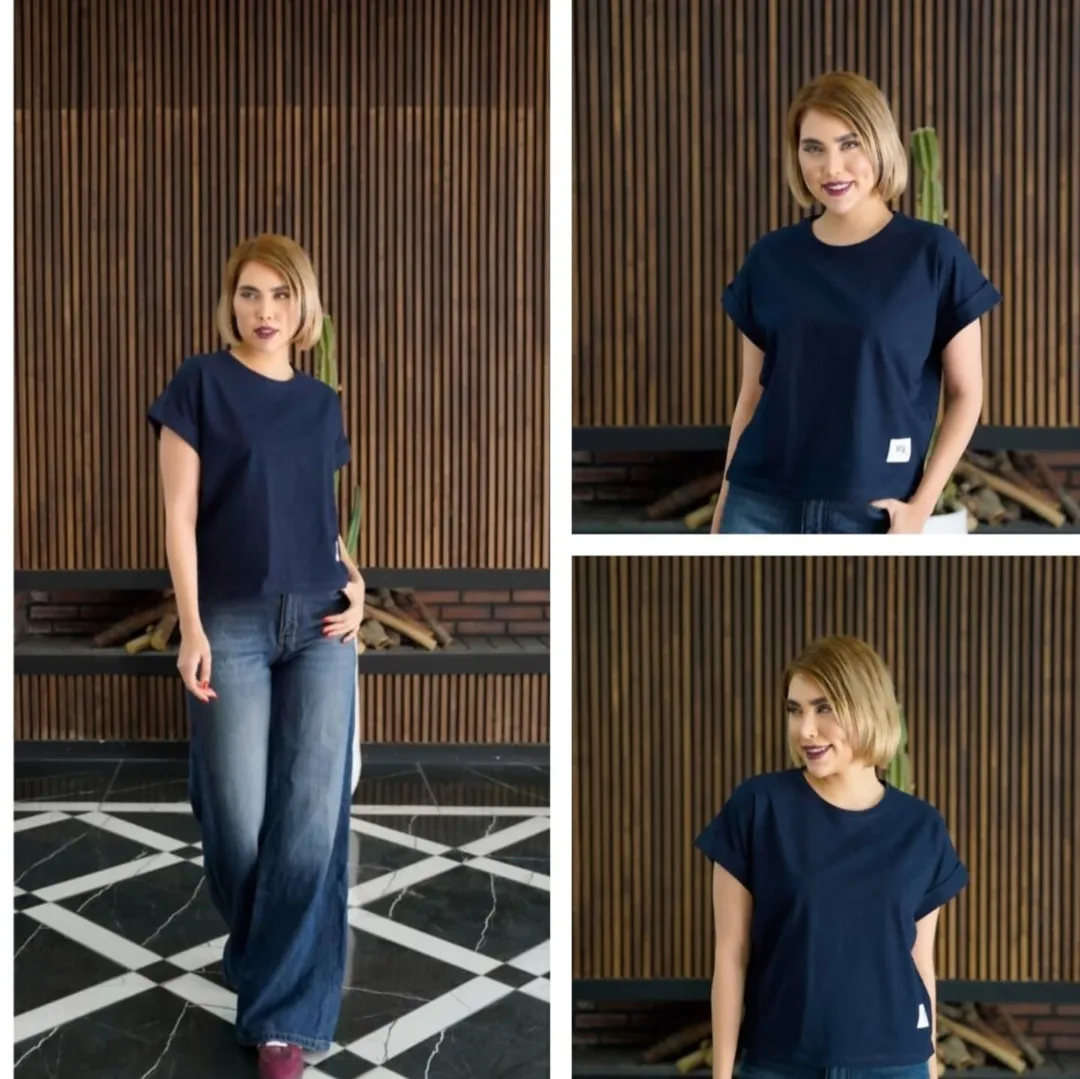 کراپ آستین پاکتی جذاب با جنس کارپنبه و رنگبندی مشکی، سفید، کرم، شکلاتی، آبی، سورمه ای. دورسینه بدون کشسانی ۱۱۸ و قدلباس ۵۵.